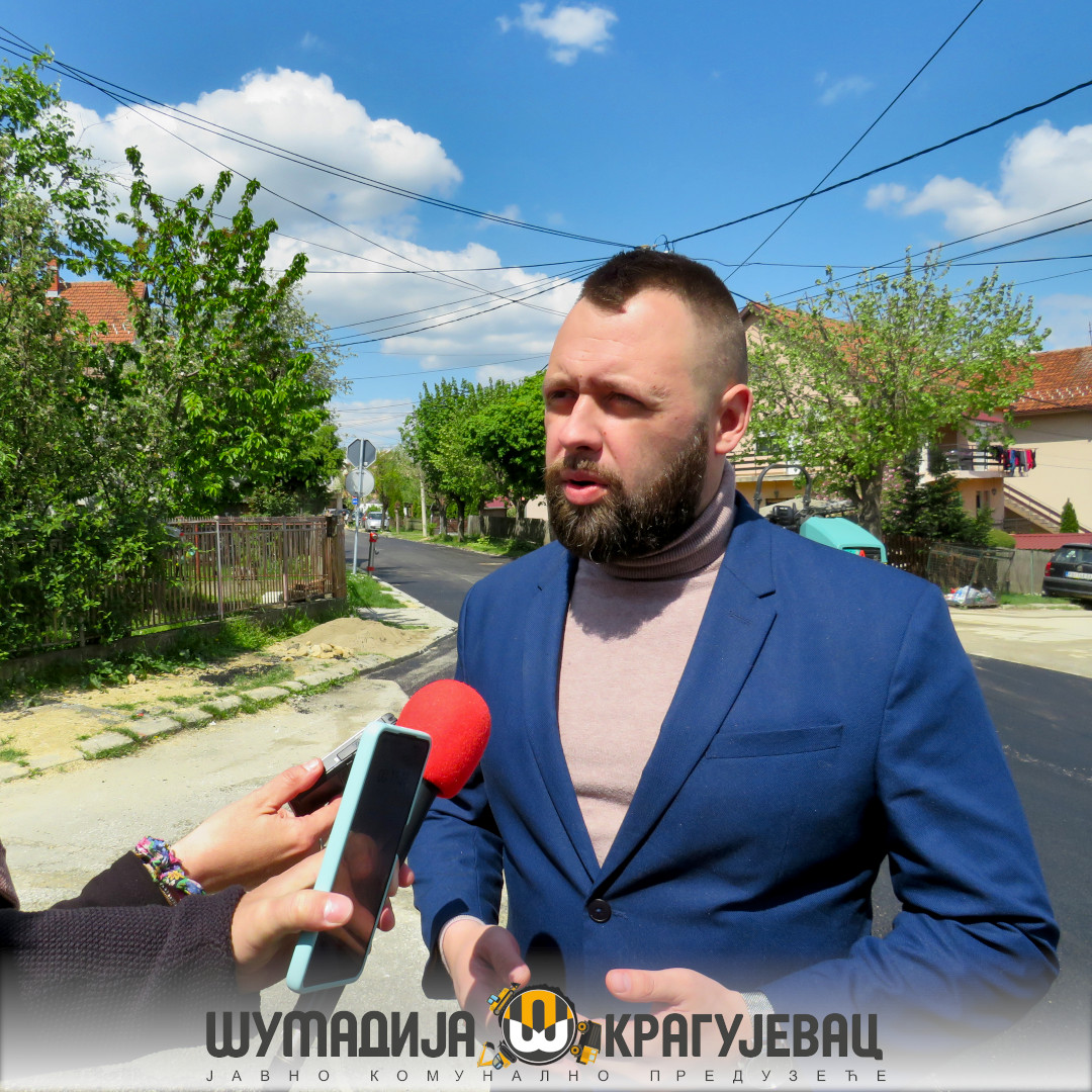 Povoljni vremenski uslovi omogućili su nam da kompletni radovi na putnoj infrastrukturi budu izvedeni i preko naših očekivanja. Ekipe JKP Šumadija Kragujevac danas izvode završne radove u Prištinskoj ulici, a nakon toga će se nastaviti sa radovima i na Deninom brdu, u Sušici gde je u planu asfaltiranje Cajgetove ulice, a pristupili smo i rešavanju ozbiljnog komunalnog problema u ulici Kadinjača gde su već započeti radovi. Paralelno sa radovima na asfaltiranju vrši se i sanacija puteva pre svega na seoskom području i u prigradskim naseljima, pa tako se tamponiraju putevi u Erdeču, a na seoskom području su ekipe u Rogojevcu i Jarušicama tako da je to jedan sveobuhvatni prikaz radova koji se u ovom trenutku odvijaju u Kragujevcu, istakao je Aleksandar Lazović, šef Kabineta gradonačelnika.