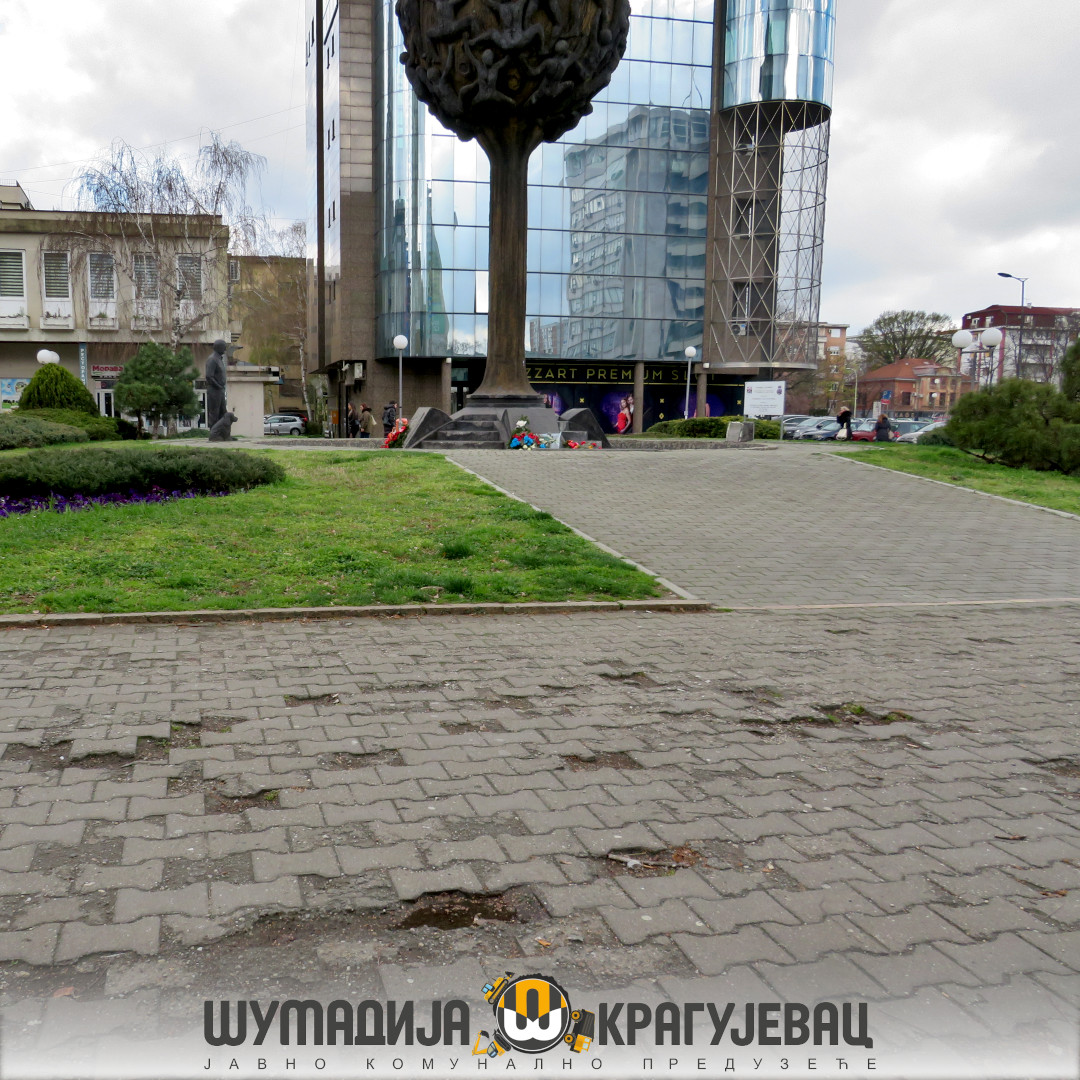 Sektor niskogradnje JKP Šumadija Kragujevac priveo je kraju radove na kompletnoj rekonstrukciji platoa ispred Robne kuće Beograd. Radovi su trajali mesec dana, a kao što je i najavljeno Trg je kompletno uređen pre početka majskih svečanosti.