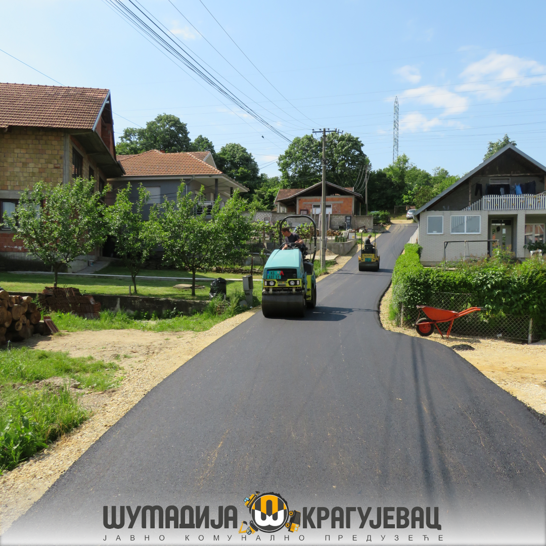 Sektor niskogradnje JKP Šumadija Kragujevac izvodi završne radove na asfaltiranju ulica 25. avgusta i Aleksandra Blagojevića u Mesnoj zajednici Filip Kljajić. Radove su danas obišli Aleksandar Lazović, šef Kabineta gradonačelnika sa saradnicima i predstavnici JKP Šumadija Kragujevac.