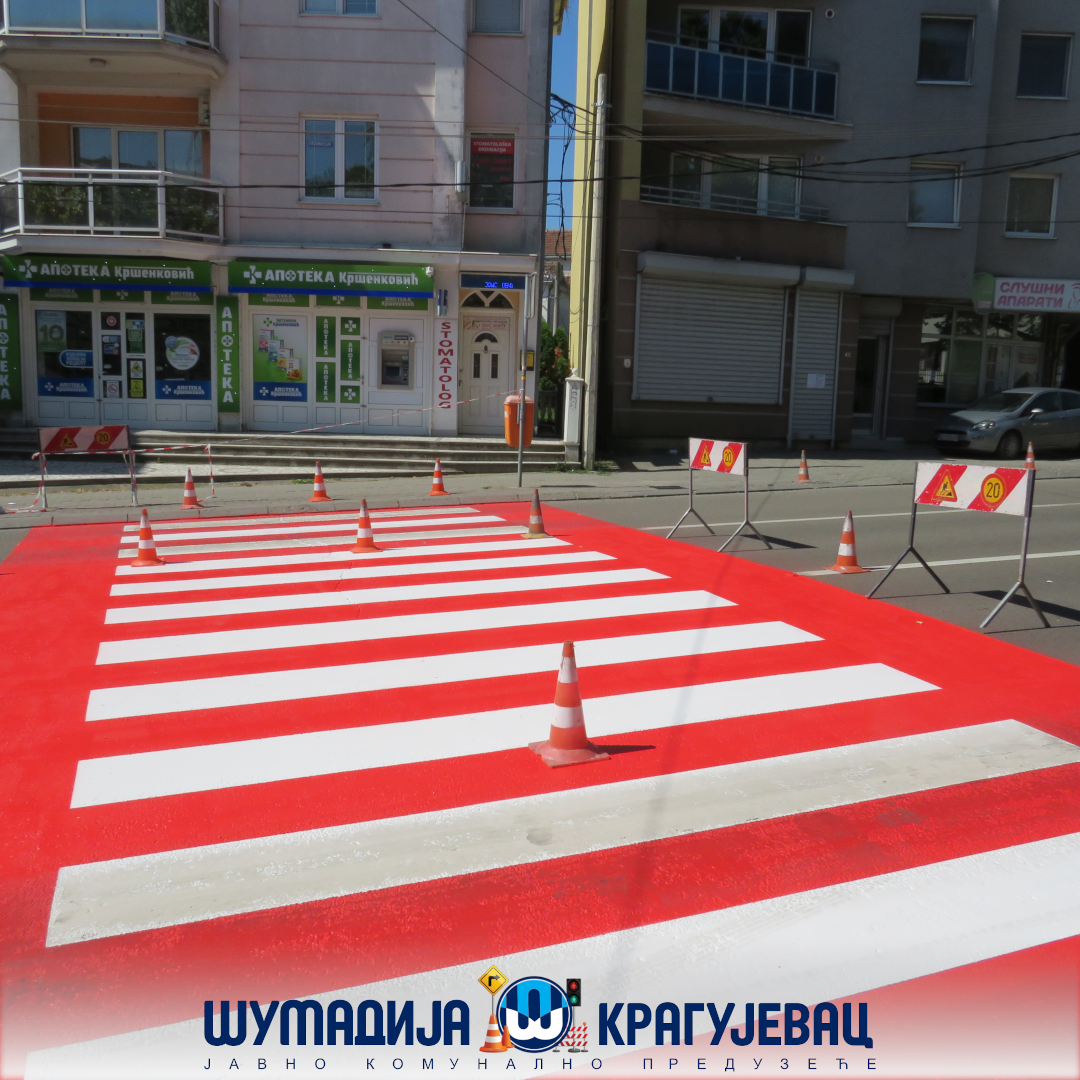 Zbog bolje uočljivosti i bezbednosti svih učesnika u saobraćaju izvršena je obnova i farbanje pešačkih prelaza sa crvenom podlogom u Zmaj Jovinoj ulici kod ATD-a i u ulici Dr Elizabete Ros kod Mašinskog fakulteta.