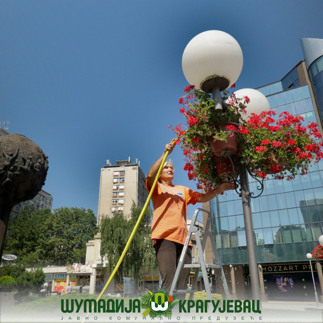 Sektor zelenila JKP Šumadija Kragujevac i pored visokih temperatura izvodi radove na polivanju i održavanju cvetne rasade na teritoriji grada.