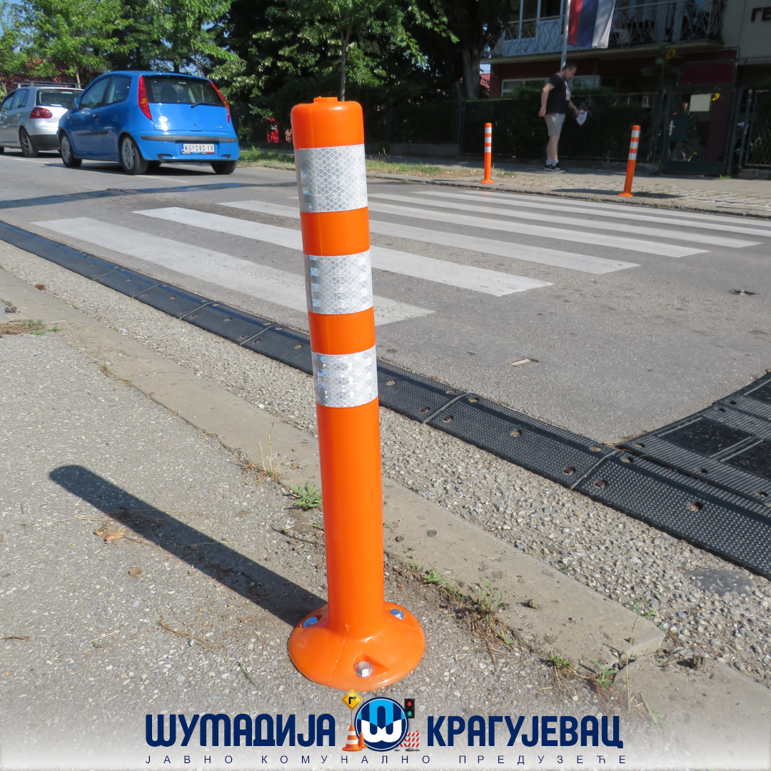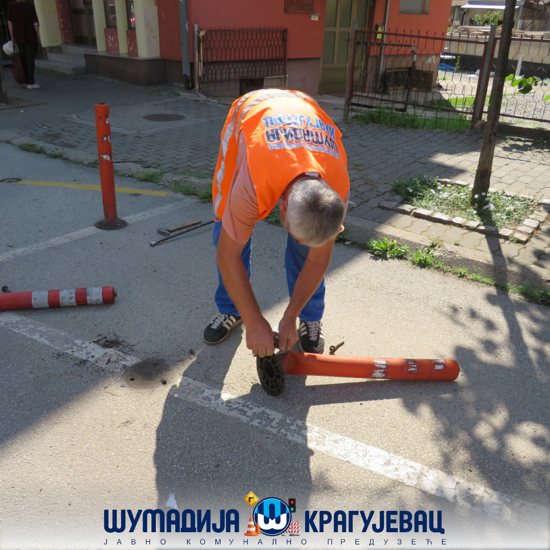 Danas će biti izvršena zamena oštećenih gumenih elemenata usporivača saobraćaja i 7 barijernih stubića u ulici Kralja Milana IV, dok će u zoni Osnovne škole „Radoje Domanović“ u ulici Svetozara Markovića biti izvršena zamena 8 oštećenih fleksibilnih barijernih stubića.