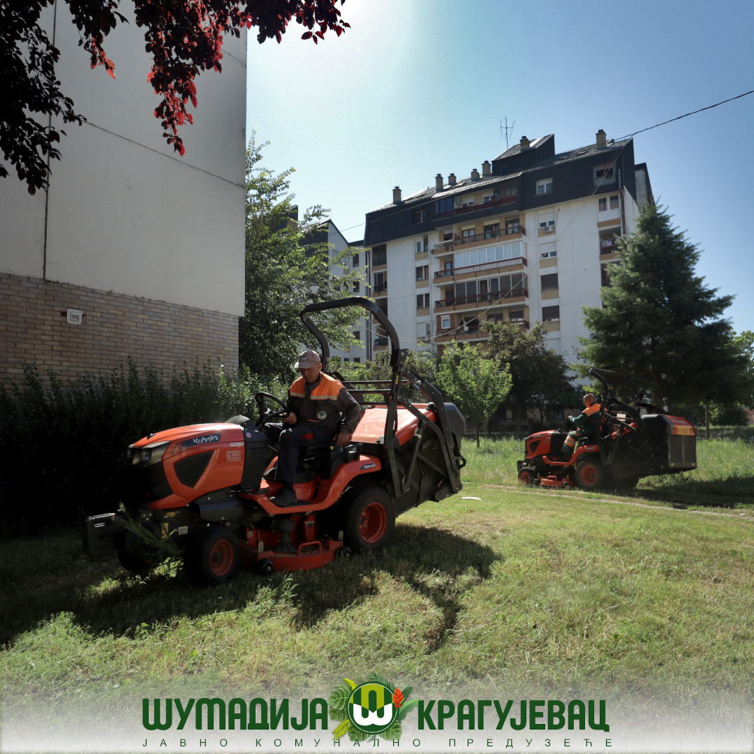 Košenje travnatih površina najobimniji je posao ovog Sektora, pa je danas sva raspoloživa mehanizacija angažovana na više lokacija u gradu. Radovi se izvode u naseljima Centralna radionica i Mala Vaga, kao i u ulicama Lepenički bulevar i Kneza Miloša. Košenje zelenih površina obavlja se na Vojničkom groblju, na Đačkom trgu i ispred teatra „Joakim Vujić“, kao i na površinama korita reke Lepenice.