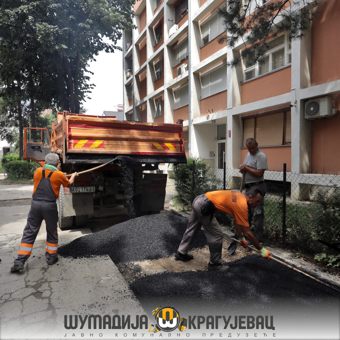Uporedo sa ovim radovi izvode se radovi na skidanju oštećenog i deformisanog sloja asfalta i asfaltiranju udarnih rupa na otvorenim parkiralištima u ulici Crvene zastave i Nikole Pašića.