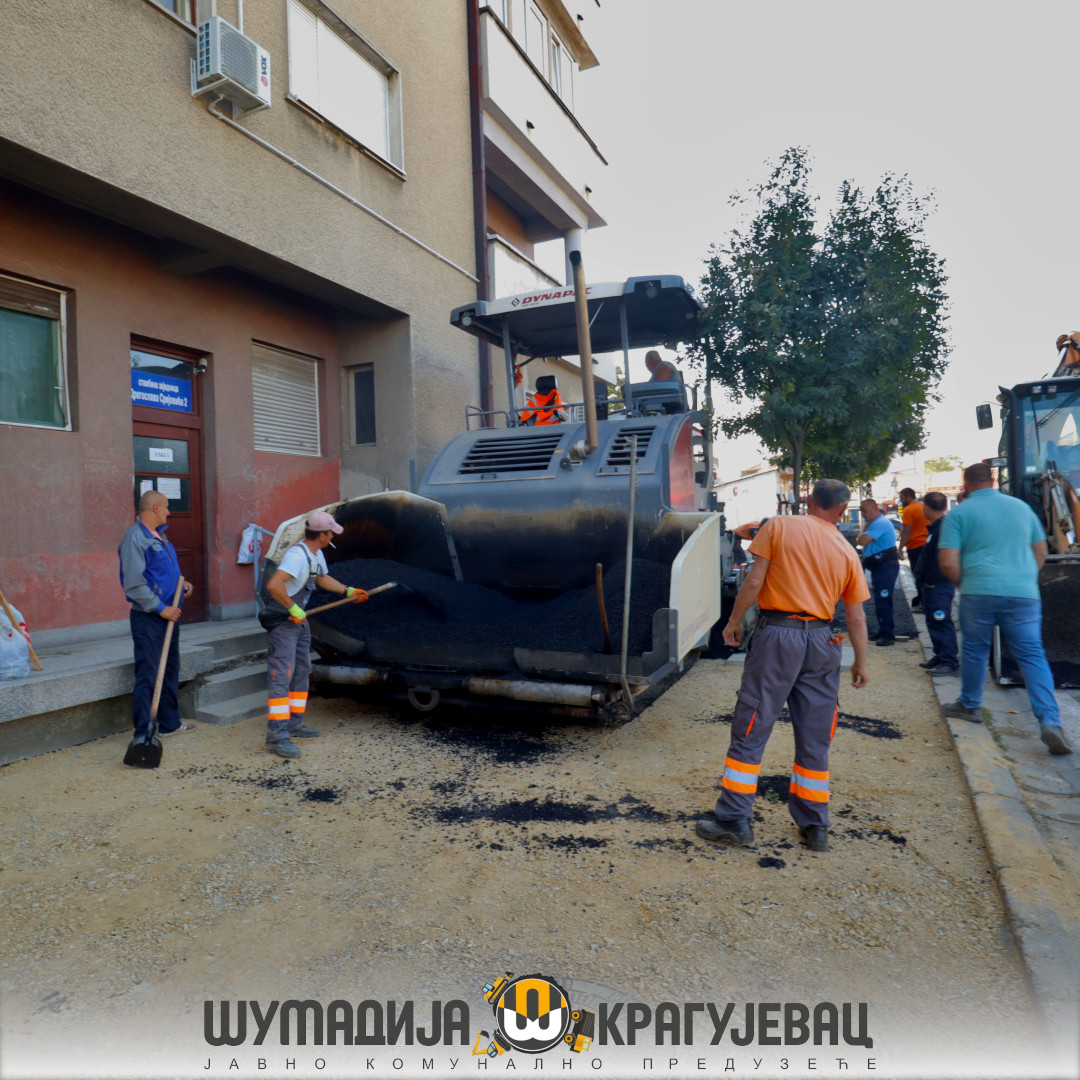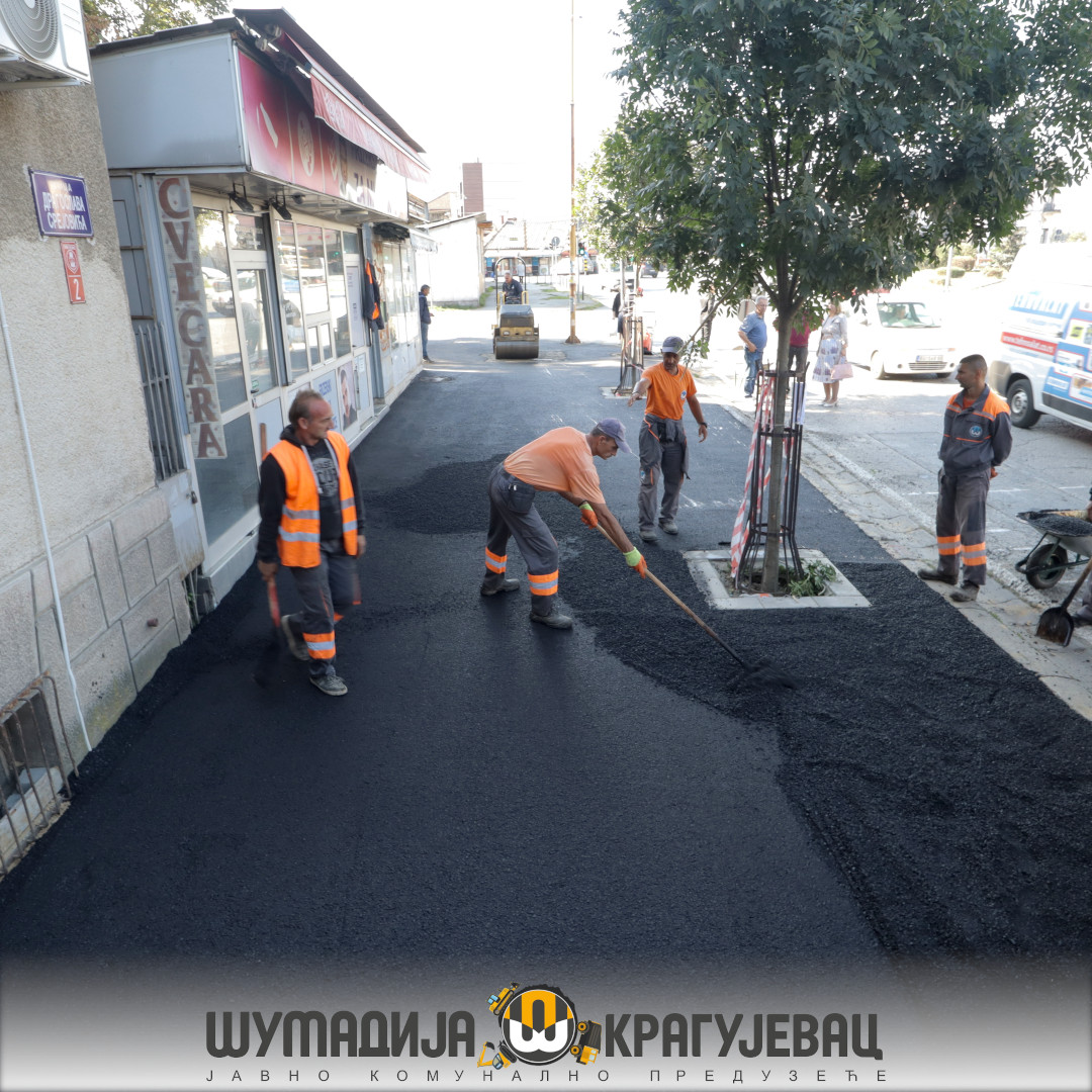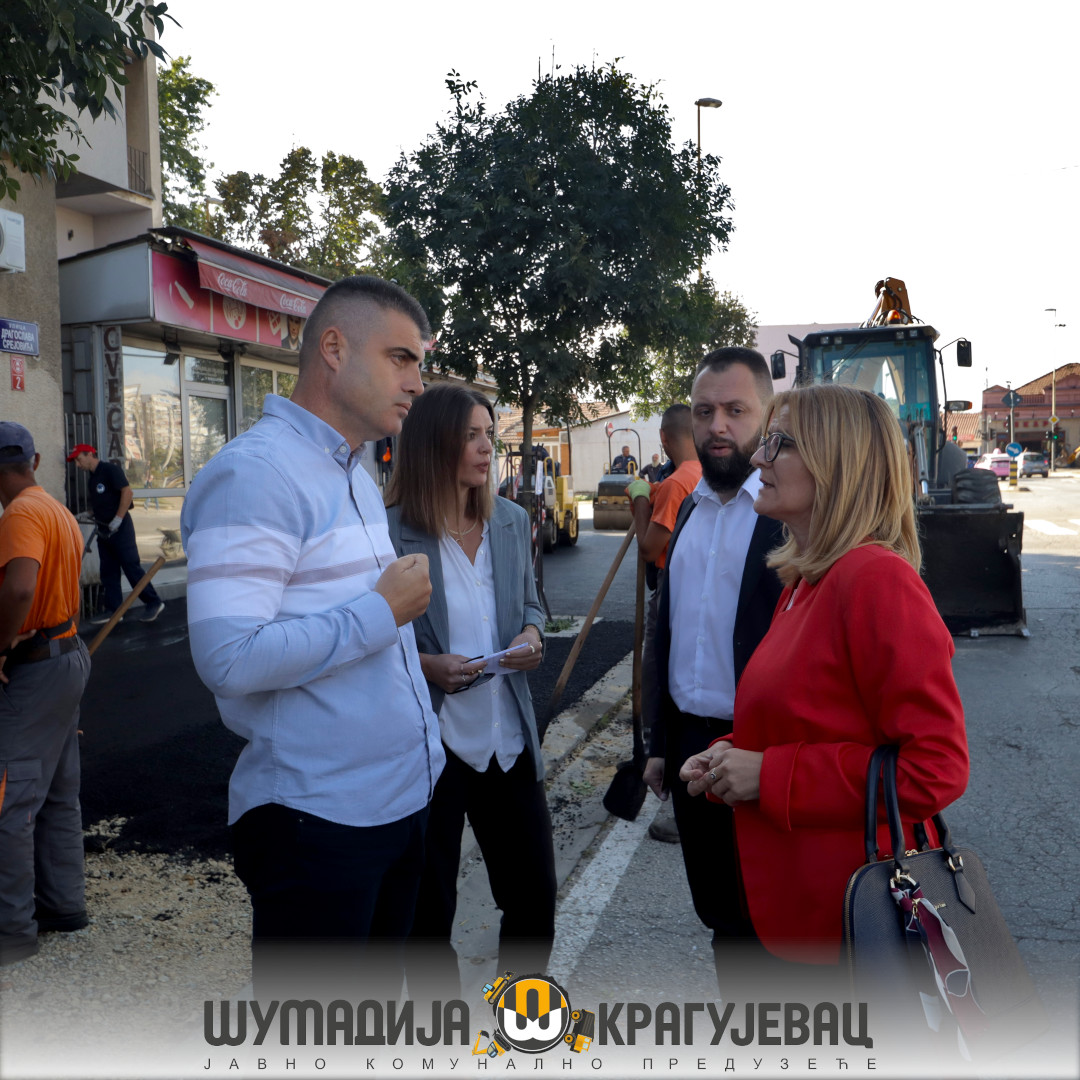 Radove na asfaltiranju, u prisustvu predstavnika JKP Šumadija Kragujevac, obišli su šef Kabineta gradonačelnika Aleksandar Lazović, članica Gradskog veća za komunalne delatnosti Maja Angelovska i načelnici Gradskih uprava Zorica Đorić i Dejan Ružić.