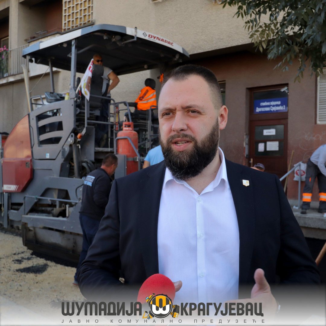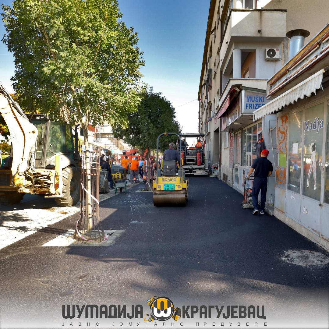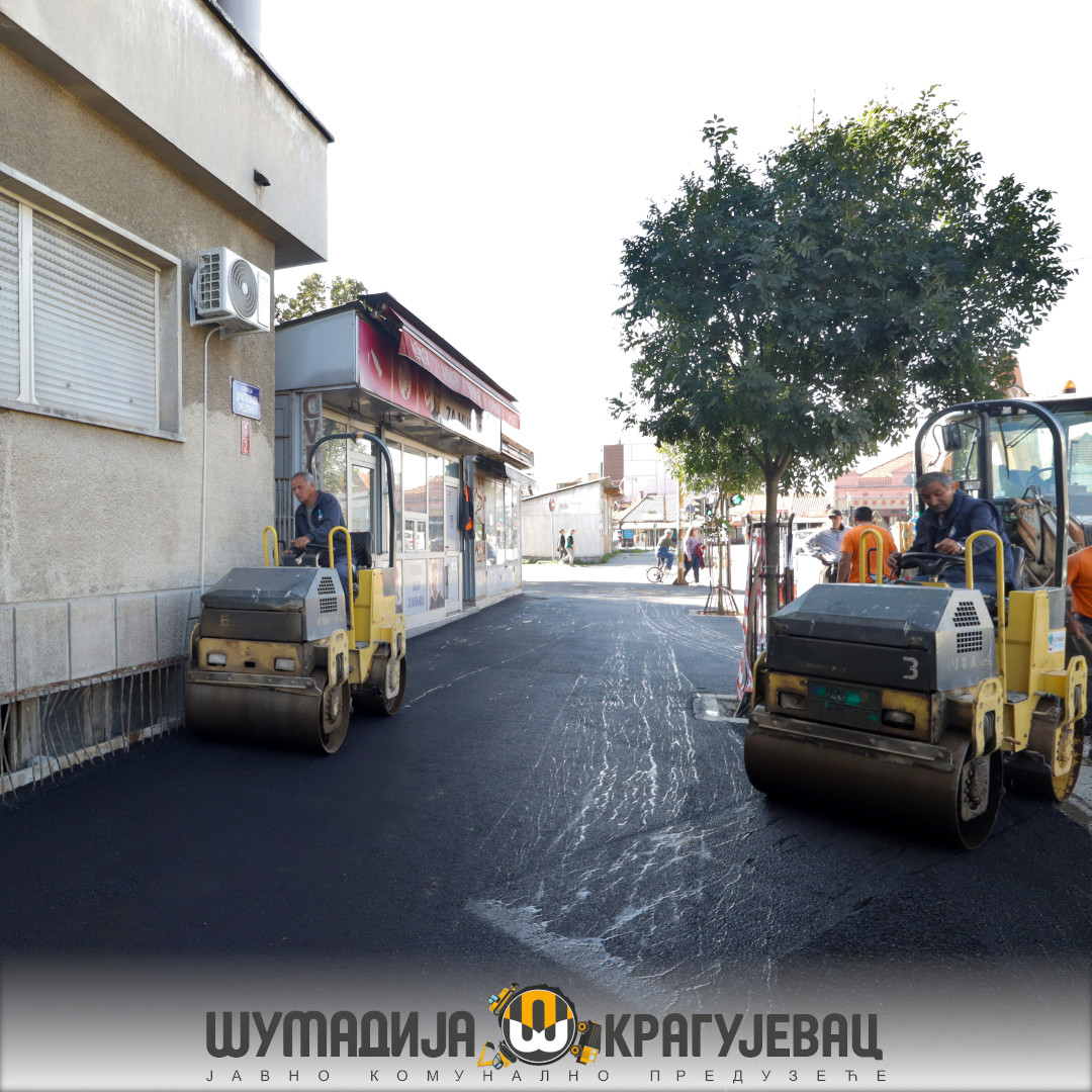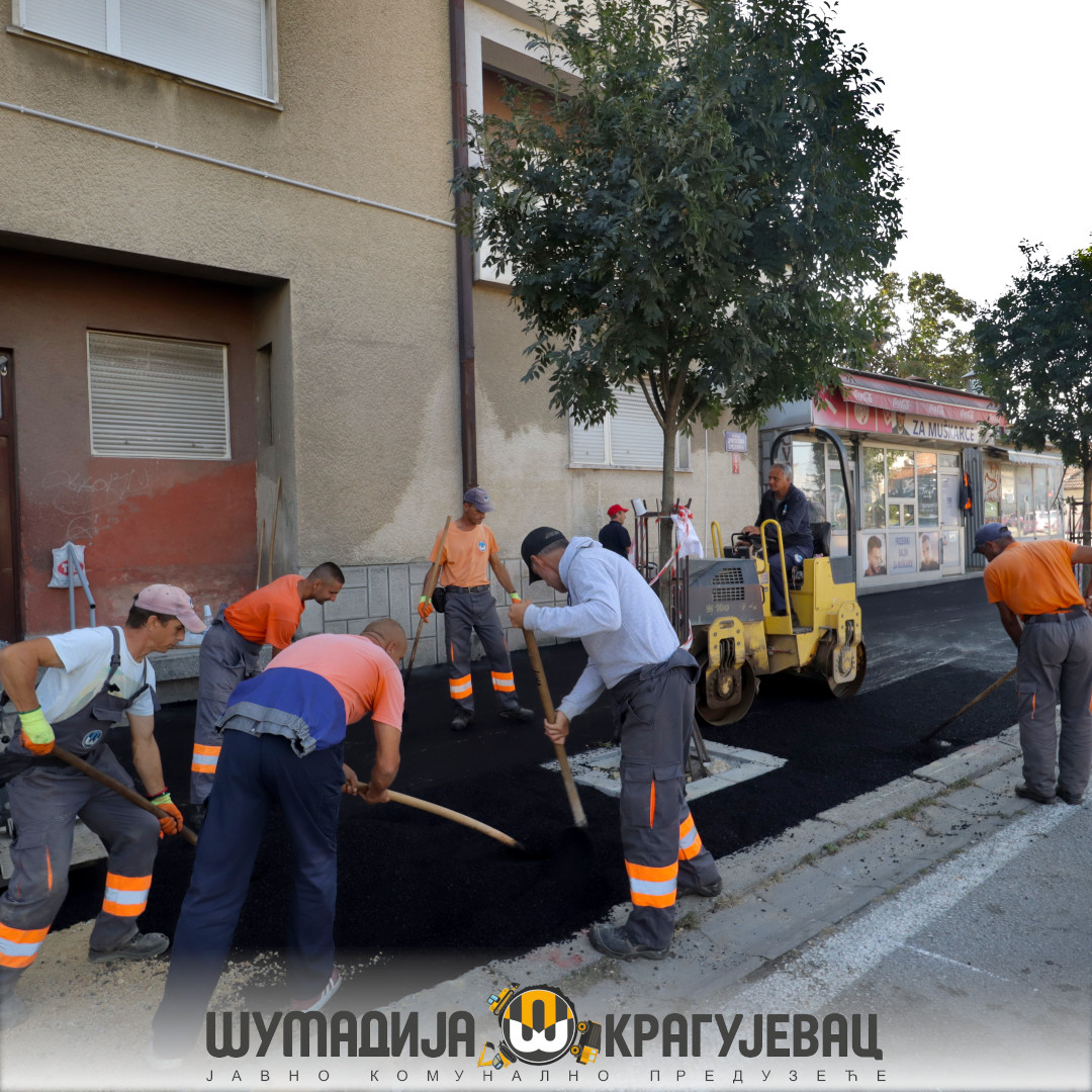 Radove na asfaltiranju, u prisustvu predstavnika JKP Šumadija Kragujevac, obišli su šef Kabineta gradonačelnika Aleksandar Lazović, članica Gradskog veća za komunalne delatnosti Maja Angelovska i načelnici Gradskih uprava Zorica Đorić i Dejan Ružić.