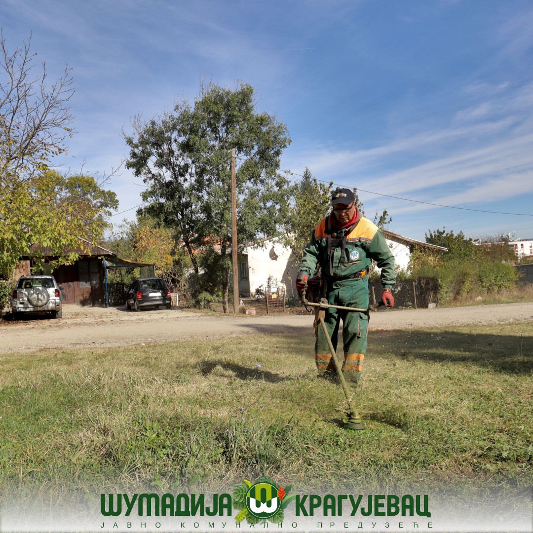 Ekipe Sektora zelenila JKP Šumadija Kragujevac sa svom neophodnom mehanizacijom obavljaju radove na košenju zelenih površina u skladu sa Planom i programom redovnog održavanja zelenih površina.