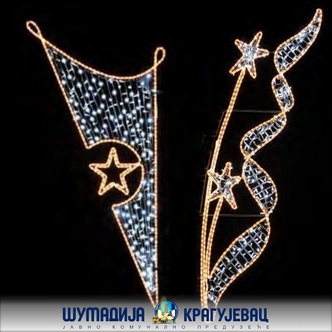 U dogovoru sa nadležnom Gradskom upravom za komunalne poslove, Služba javne rasvete JKP Šumadija Kragujevac je uprkos lošim vremenskim uslovima započela radove na postavljanju novogodišnje rasvete.