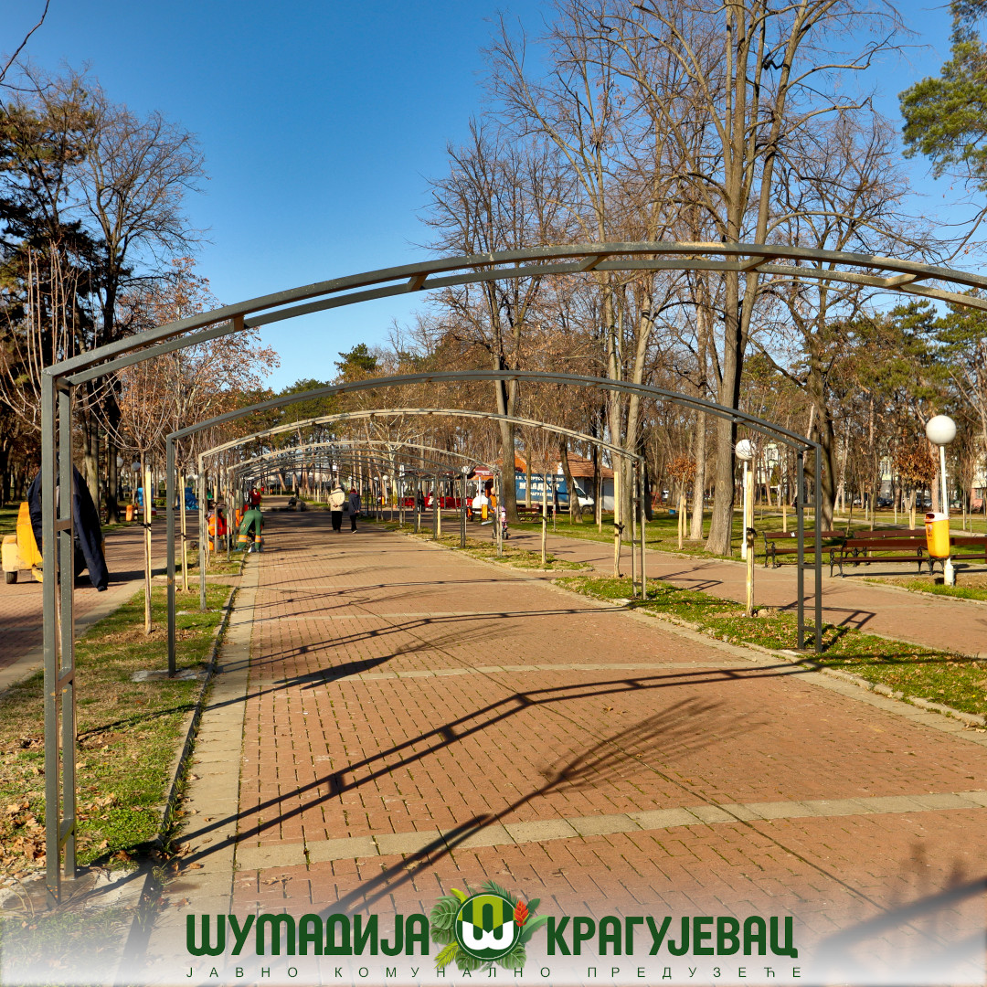 JKP Šumadija Kragujevac izvodi radove na postavljanju metalnih lukova u Velikom parku. Planirano je postavljanje 17 lukova oko kojih će biti posađene ruže puzavice kako bi se vremenom formirao cvetni tunel. Dekorativni cvetni svod biće oformljen od ruža u crvenoj, žutoj i roze boji.