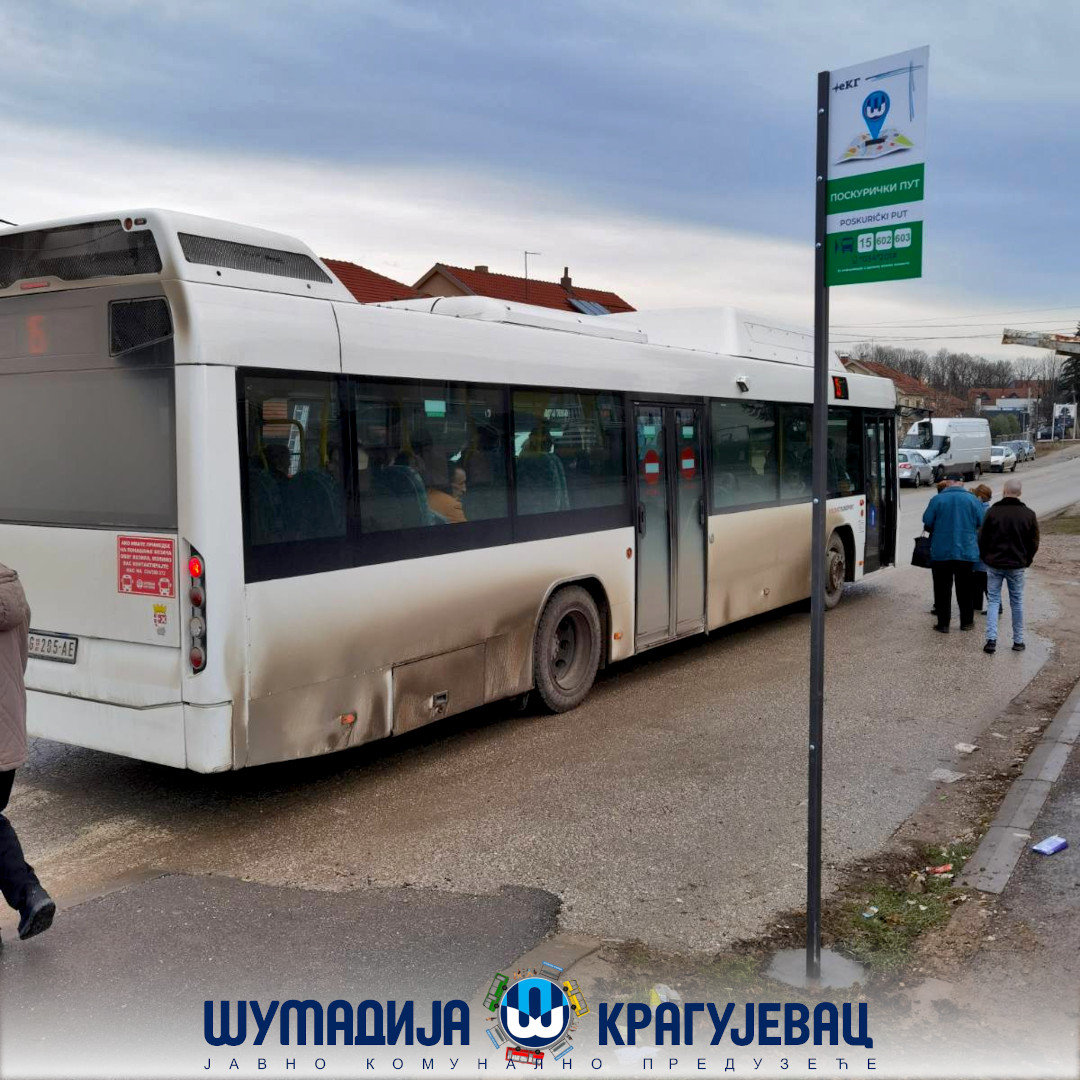 Tokom 2019. i 2020. godine na teritoriji grada Kragujevca postavljeno je 250 info-tabli na autobuskim stajalištima. Informativne table sadrže naziv stajališta, oznake linija koje saobraćaju i kod stajališta. Pozivom na broj *034* kod stanice # putnici mogu da provere koliko stanica su udaljena vozila koja pristižu na stajalište.