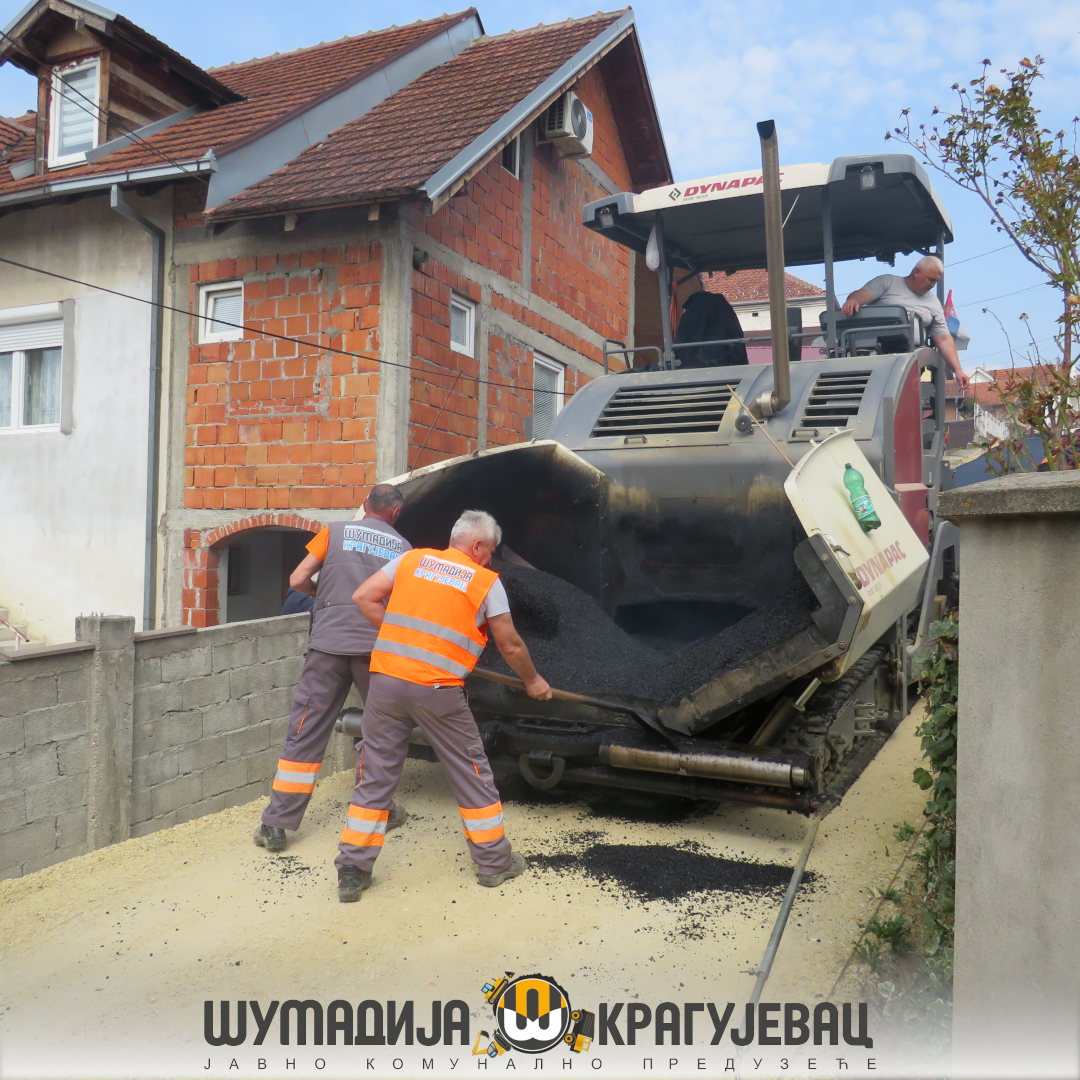 Ekipe Sektora niskogradnje JKP Šumadija Kragujevac u skladu sa Programom održavanja infrastrukture danas se izvode završne radovi na asfaltiranju ulice Gustava Krkleca i dela ulice Nedeljka Čabrinovića u MZ Beloševac.