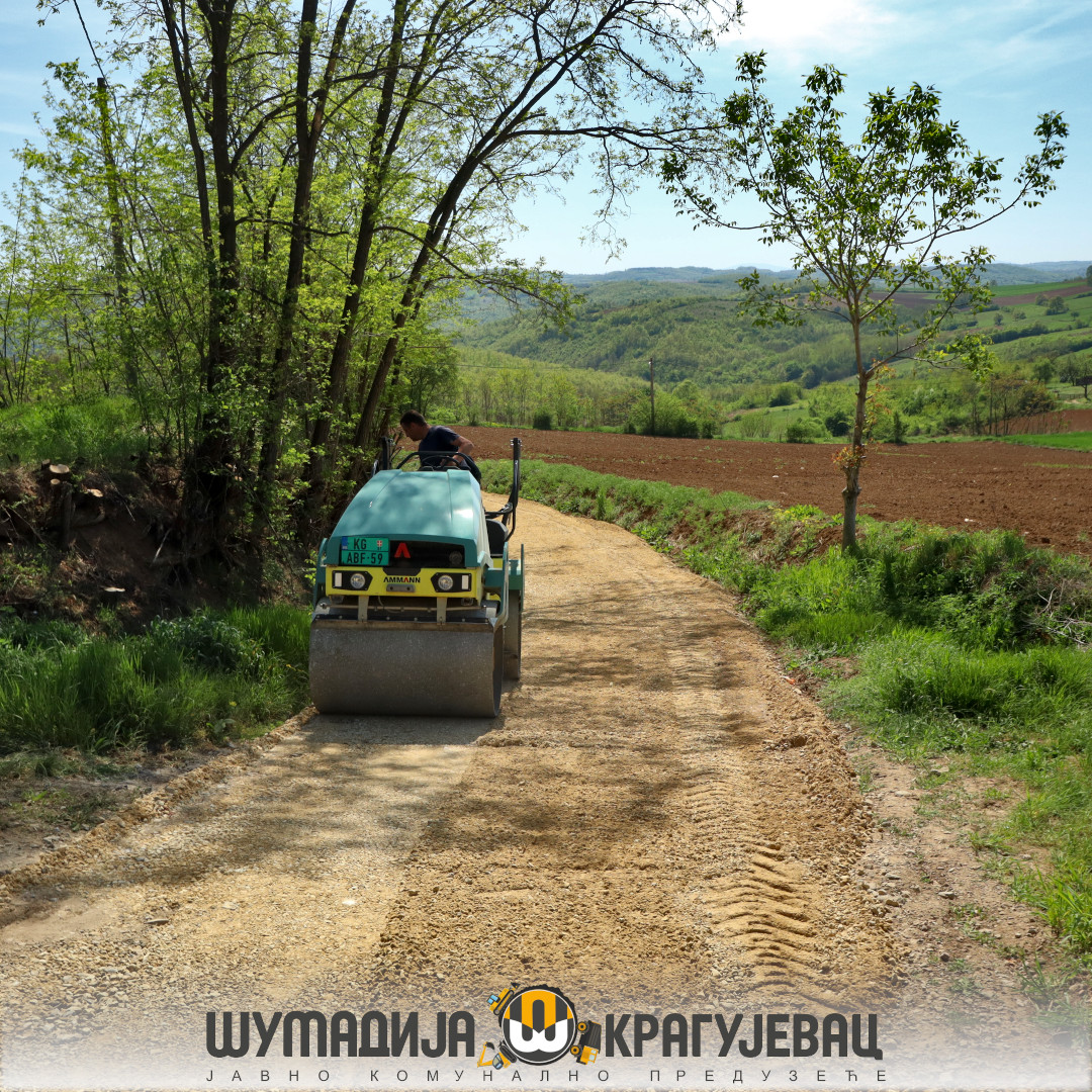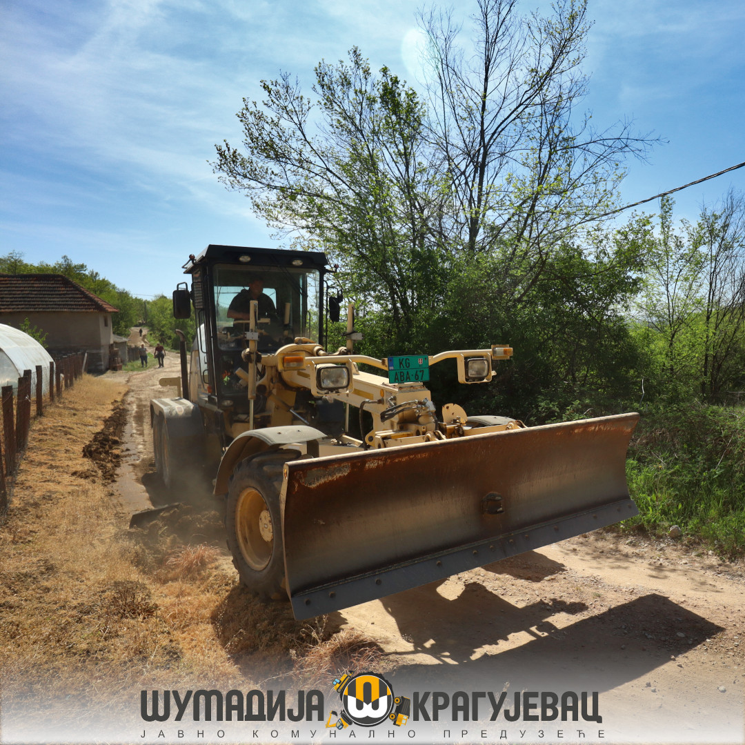 Sektor niskogradnje JKP Šumadija Kragujevac nastavlja infrastrukturne radove na uređenju atarskih puteva u Jovanovcu, a nakon toga radovi će se nastaviti u Goločelu, Đuriselu i Dragobraći, što će meštanima omogućiti lakši prilaz svojim njivama.