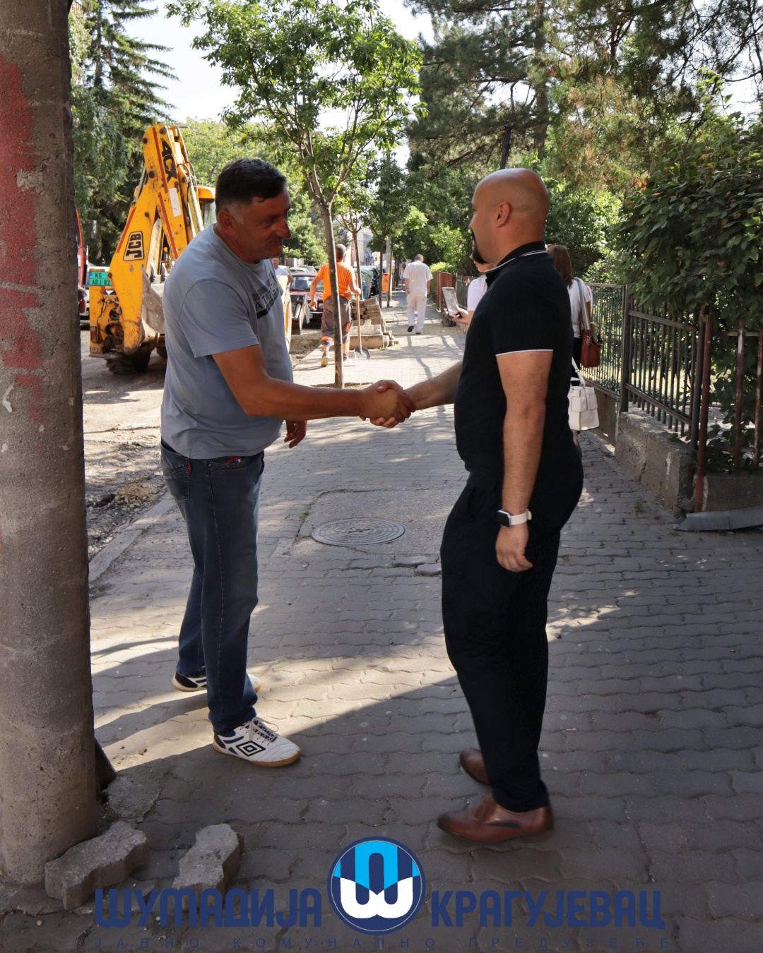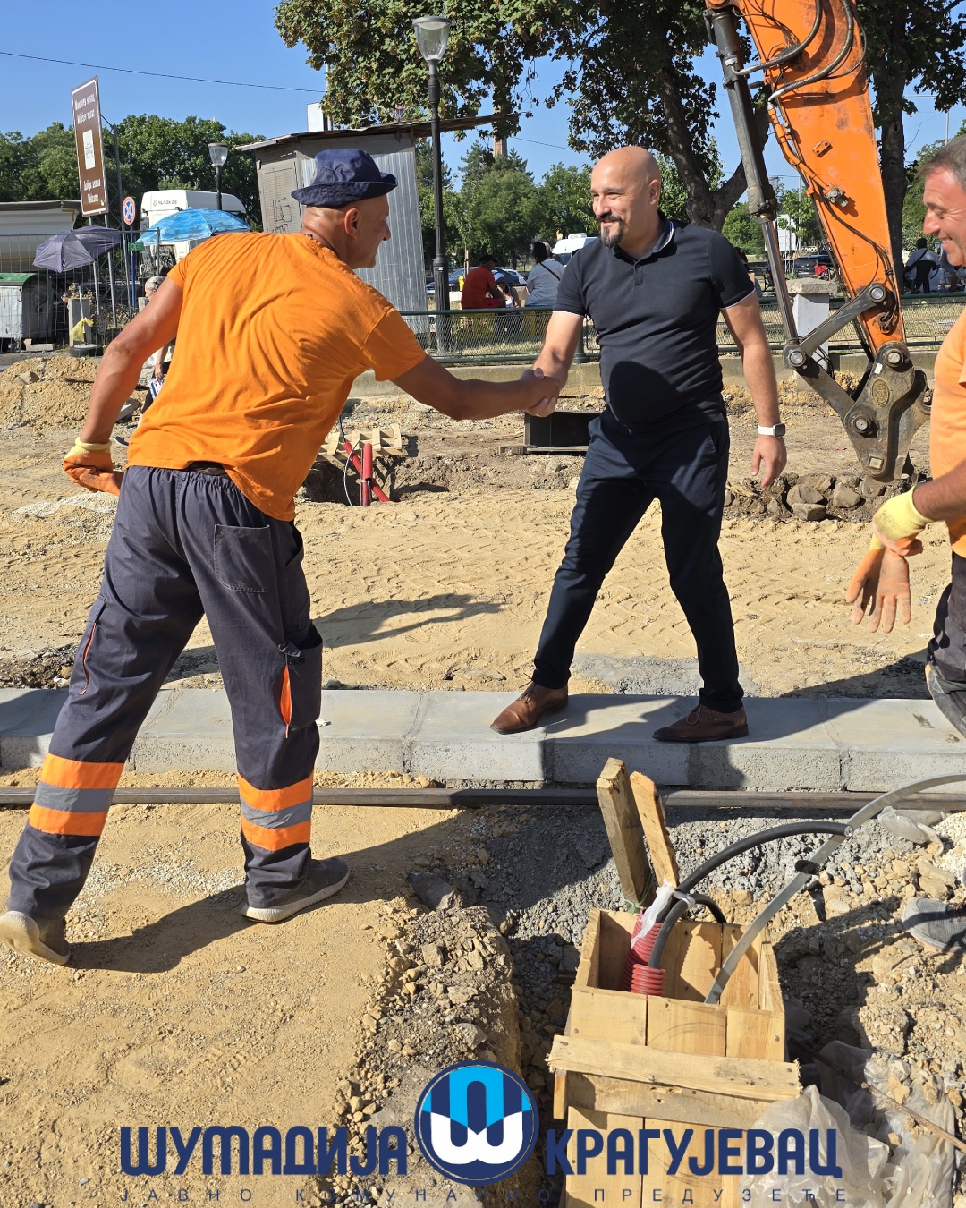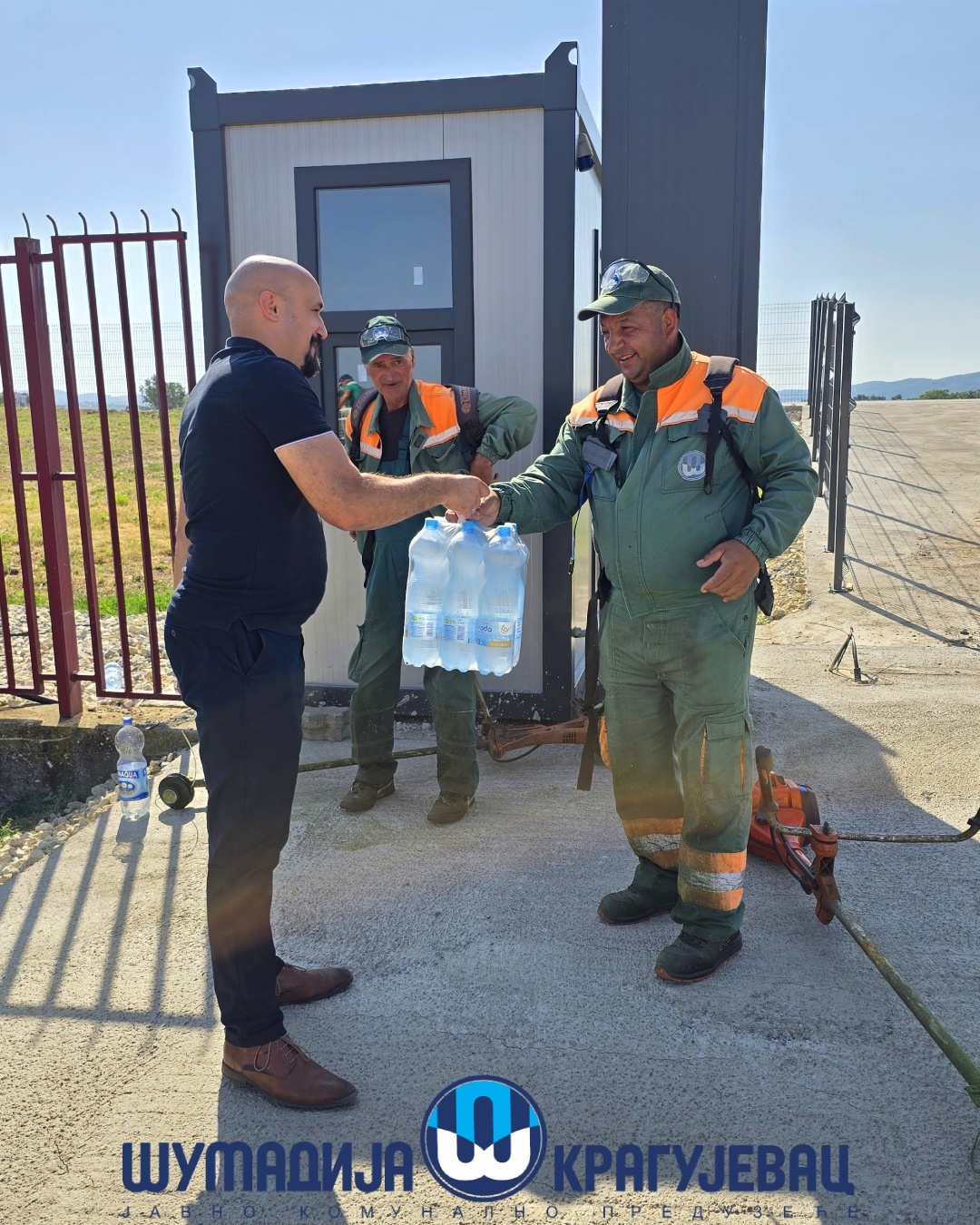 Direktor JKP Šumadija Kragujevac, Miroslav Petrašinović obišao je danas radnike koji obavljaju poslove na otvorenom. Usled visokih dnevnih temperatura za njih je rad organizovan u dve smene – u ranim jutarnjim i popodnevnim časovima.