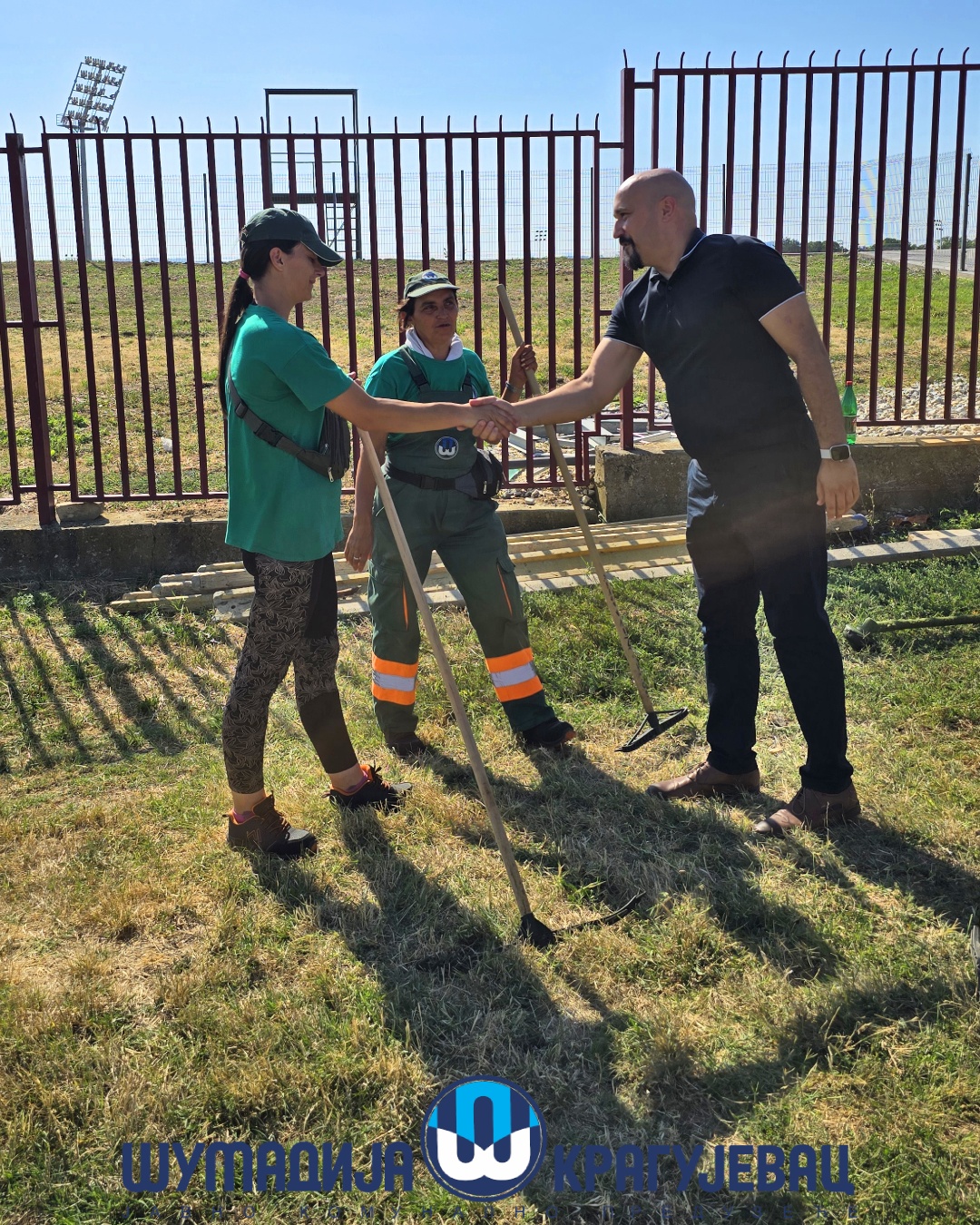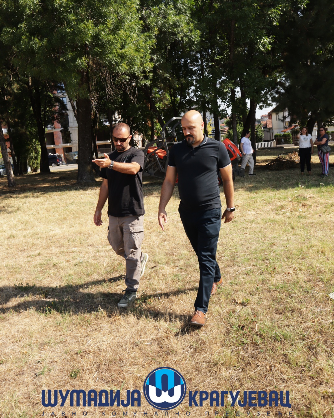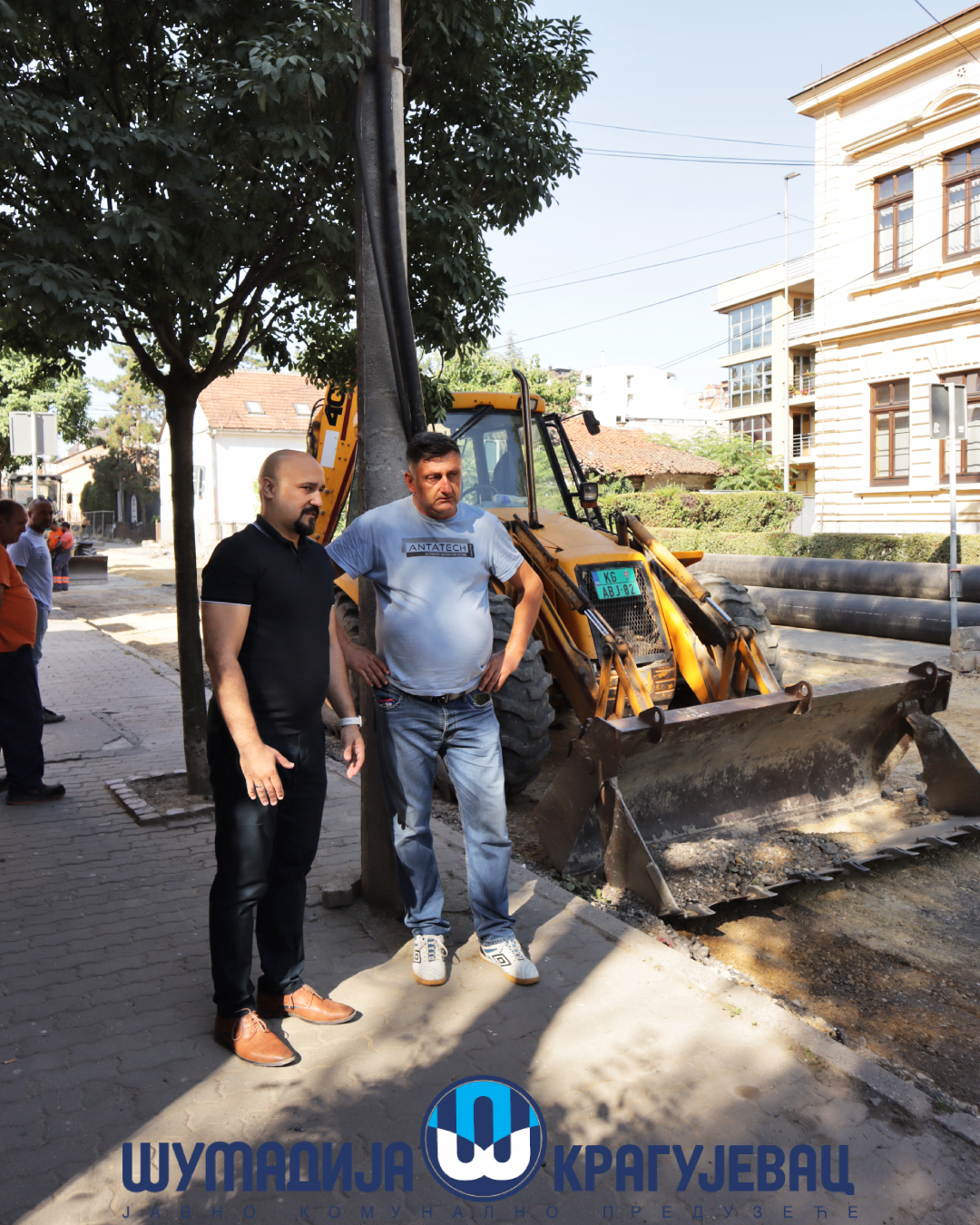 Direktor JKP Šumadija Kragujevac, Miroslav Petrašinović obišao je danas radnike koji obavljaju poslove na otvorenom. Usled visokih dnevnih temperatura za njih je rad organizovan u dve smene – u ranim jutarnjim i popodnevnim časovima.