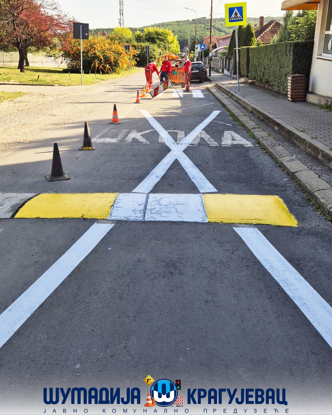 Radi povećanja bezbednosti dece i svih učesnika u saobraćaju, Služba signalizacije JKP Šumadija Kragujevac započela je sa izvođenjem radova na obeležavanju horizontalne saobraćajne signalizacije u zonama obrazovnih ustanova na teritoriji grada.