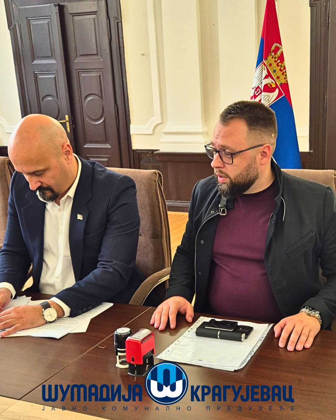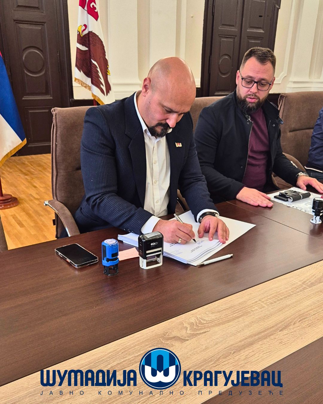 У присуству директора ЈКП Шумадија Крагујевац и ЈКП Водовод и канализација, као и представника репрезентативних синдиката, данас је у просторијама Градске управе потписан Колективни уговор за запослене у јавном комуналном сектору града Крагујевца.