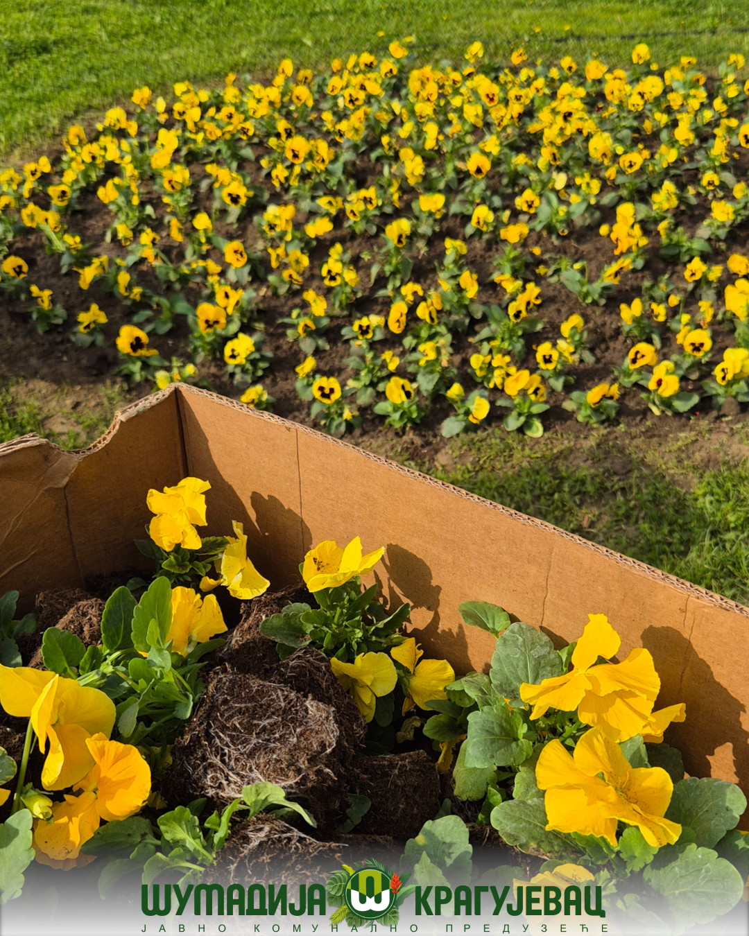 Sadnja nove rasade obavlja se na zelenim površinama ispred Skupštine grada i Doma sindikata, vađenje rasade, okopavanje i priprema za sadnju vrši se u Pešačkoj zoni i ulici Kralja Aleksandra I Karađorđevića, a orezivanje šiblja u ulici Grada Sirena i na prostoru kod hale Jezero.