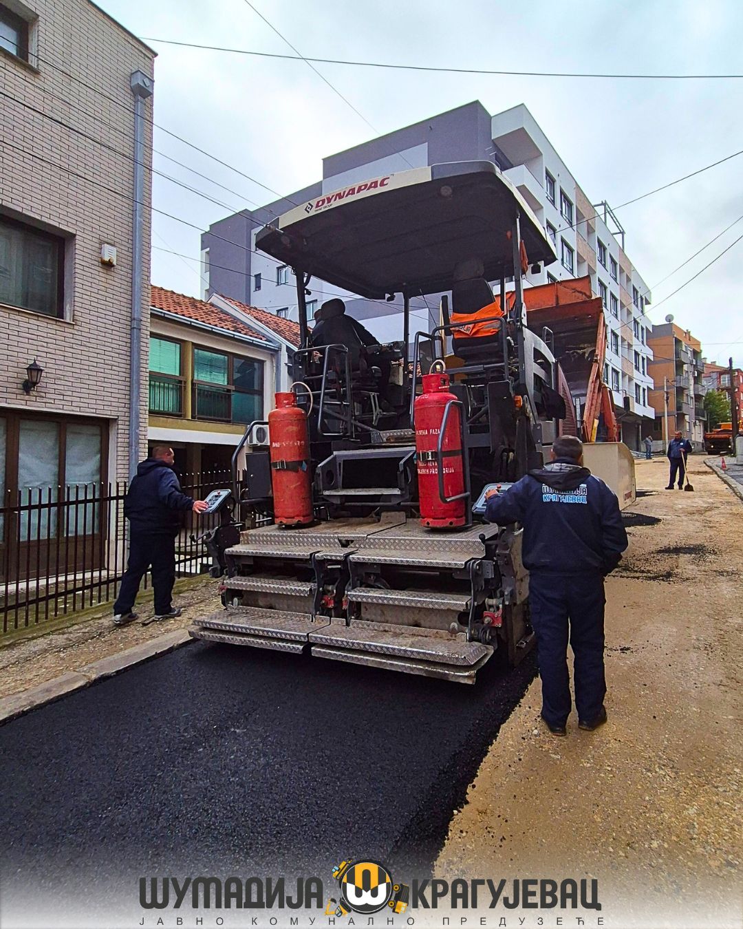 Radove na asfaltiranju danas su obišli Miroslav Petrašinović, v.d. direktora JKP Šumadija Kragujevac, Stefan Jovanović, član Gradskog veća za komunalnu delatnost i Zorica Đorić, v.d. načelnika Gradske uprave za komunalne poslove sa saradnicima.