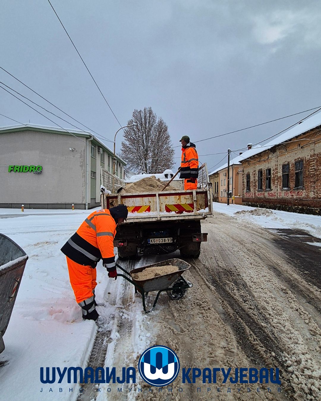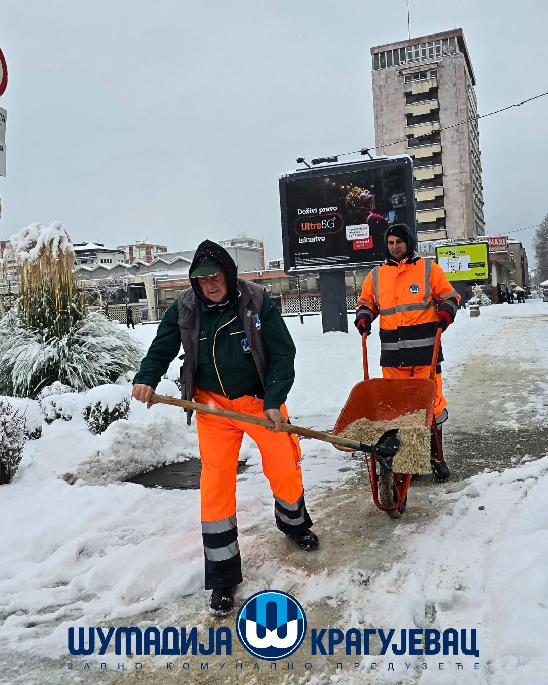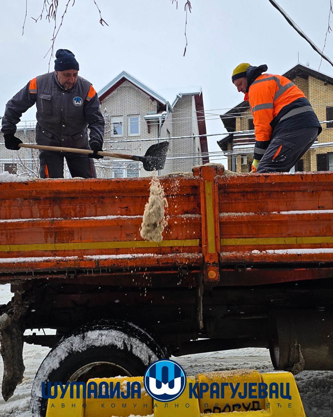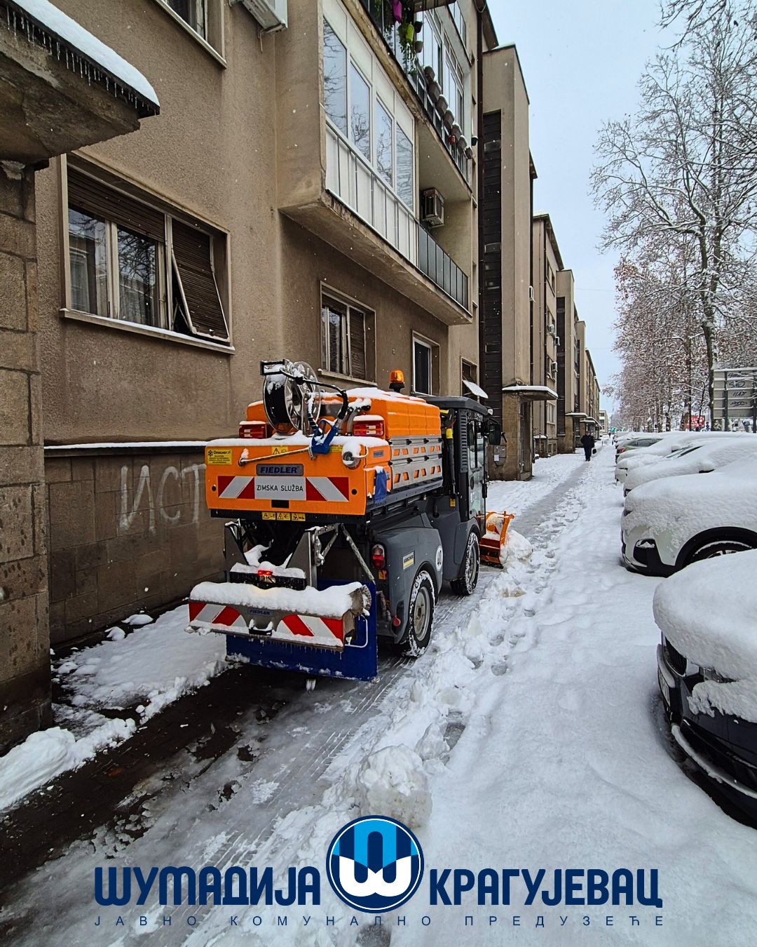 Zimska služba JKP Šumadija Kragujevac tokom noći i jutra angažovana je na obezbeđivanju prohodnosti saobraćajnica na gradskom i seoskom području, kao i na uklanjanju snega sa trotoara, nadvožnjaka, mostova i pešačkih staza.